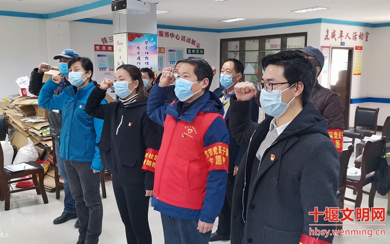 十堰市茅箭区武当路街道临时党支部召开支部主题党日活动重温入党誓词。