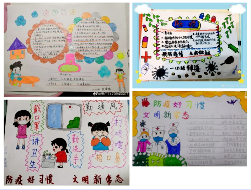 硚口区星火小学的学生争当防疫宣传员,制作电子宣传海报,传播防疫知识。
