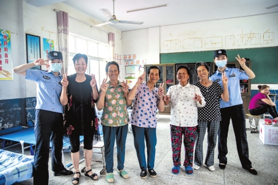 “注意安全,不要着急!”每一个出村的路口,民警有序地指挥着群众转移,不停地拼命嘶喊,嗓子哑了就用手势,汗水早已湿透警服。551名群众全部在规定时限内转移完毕,不落一人。在董场小学安置点,纪南派出所民警在此处驻点,24小时值守,负责照顾安置点内转移群众的日常生活和心理疏导等工作。