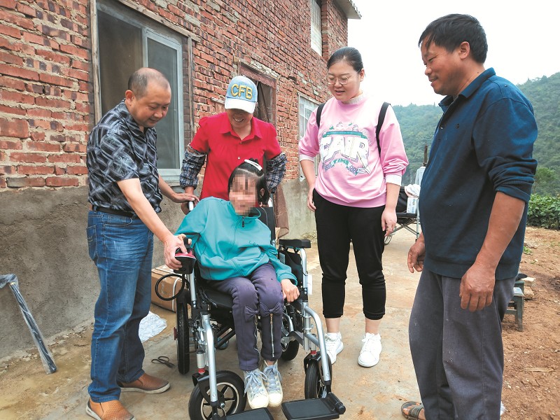 近日,十堰车城义工协会志愿者张涛和教师陈丽从十堰城区出发,驱车五十余公里,将电动轮椅、电脑、课外书等爱心物资送到郧阳区南化塘镇唐煜琳家。唐煜琳因患先天性肌肉萎缩,从小不能直立行走。近年来,在陈丽和志愿者的鼓励下,她通过看书、上网等方式坚持自学,积极面对生活。(十堰日报记者 李寅摄)