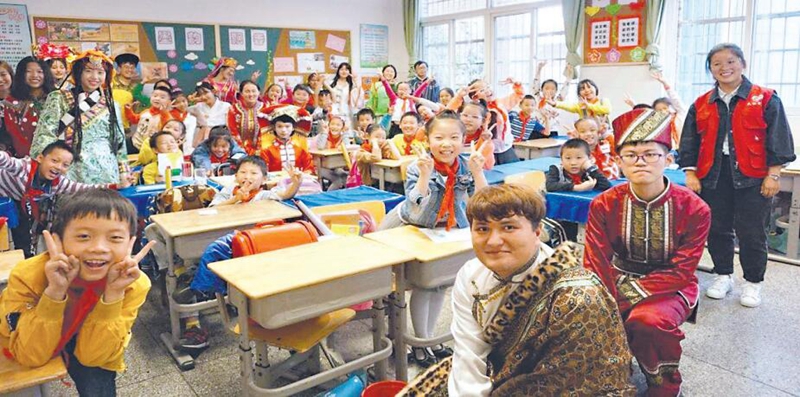 中南民族大学石榴籽志愿服务队成员走进小学开展志愿服务活动 图片来源:长江日报