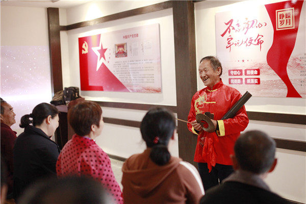 为让党史教育飞入寻常百姓家,枝江市组织一批民间文艺工作者,成立红色宣讲小分队,深入各个乡镇(街道)用群众喜闻乐见的方式宣讲党的故事,凝聚奋进力量。问安镇关庙山红色教育基地,楠管老师杨和春时而击鼓敲钹,时而唱念结合,绘声绘色给村民们宣讲党史。杨和春年近八旬,枝江市问安人,湖北省第一批非物质文化遗产代表性传承人。党史学习教育开展以来,杨和春将刘胡兰、焦裕禄等优秀党员事迹与潘天炎、“两兰”等枝江本土英雄故事相结合,自编朗朗上口的红色曲目,走村入户宣讲党史,让党史宣讲更接地气。“我们表演楠管的,既是文艺战线上的轻骑兵,也是党和政府的宣传员,深入基层宣讲党史是分内之事。”杨和春说道。看完杨和春的表演,老党员向定坤难抑激动:“如今的好日子离不开党的领导,我们要学党史、感党恩、跟党走,创造更加美好的生活。”
