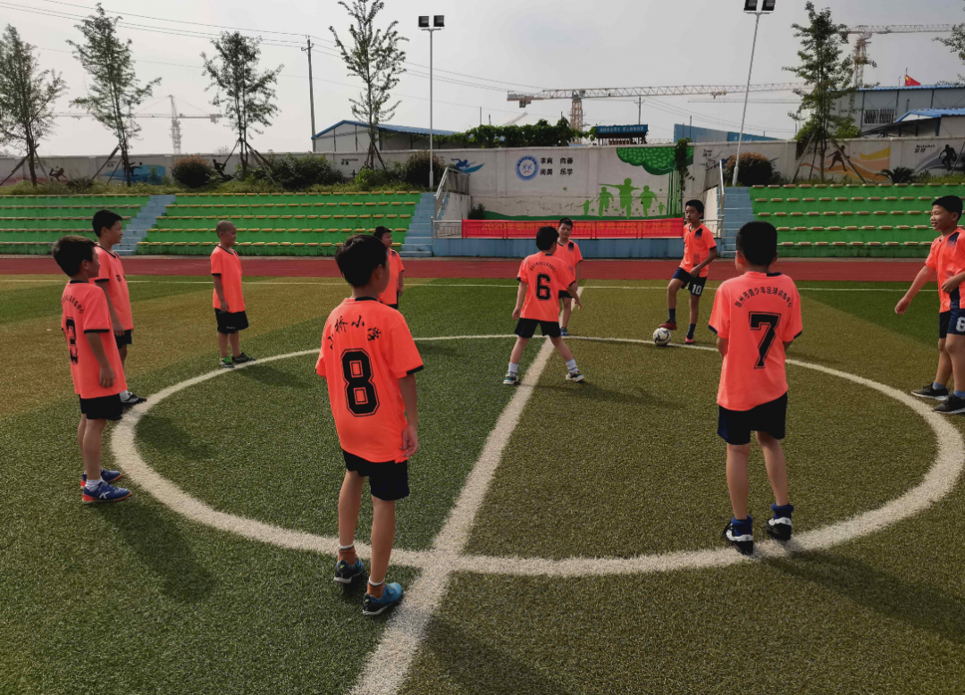 鄂州市小桥小学组织学生进行足球训练。图片来源:鄂州市委文明办供图