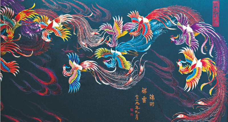 汉绣《锦羽祥云》。