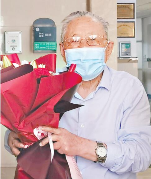 袁星光老人收到生日祝福。通讯员吴菡 摄