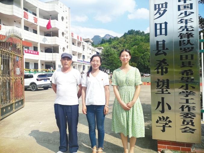 9月3日,湖北第一所希望小学——罗田县希望小学门口,晏棋、方荣、张新桥3名新老教师拍下结缘后的第一张合影。
