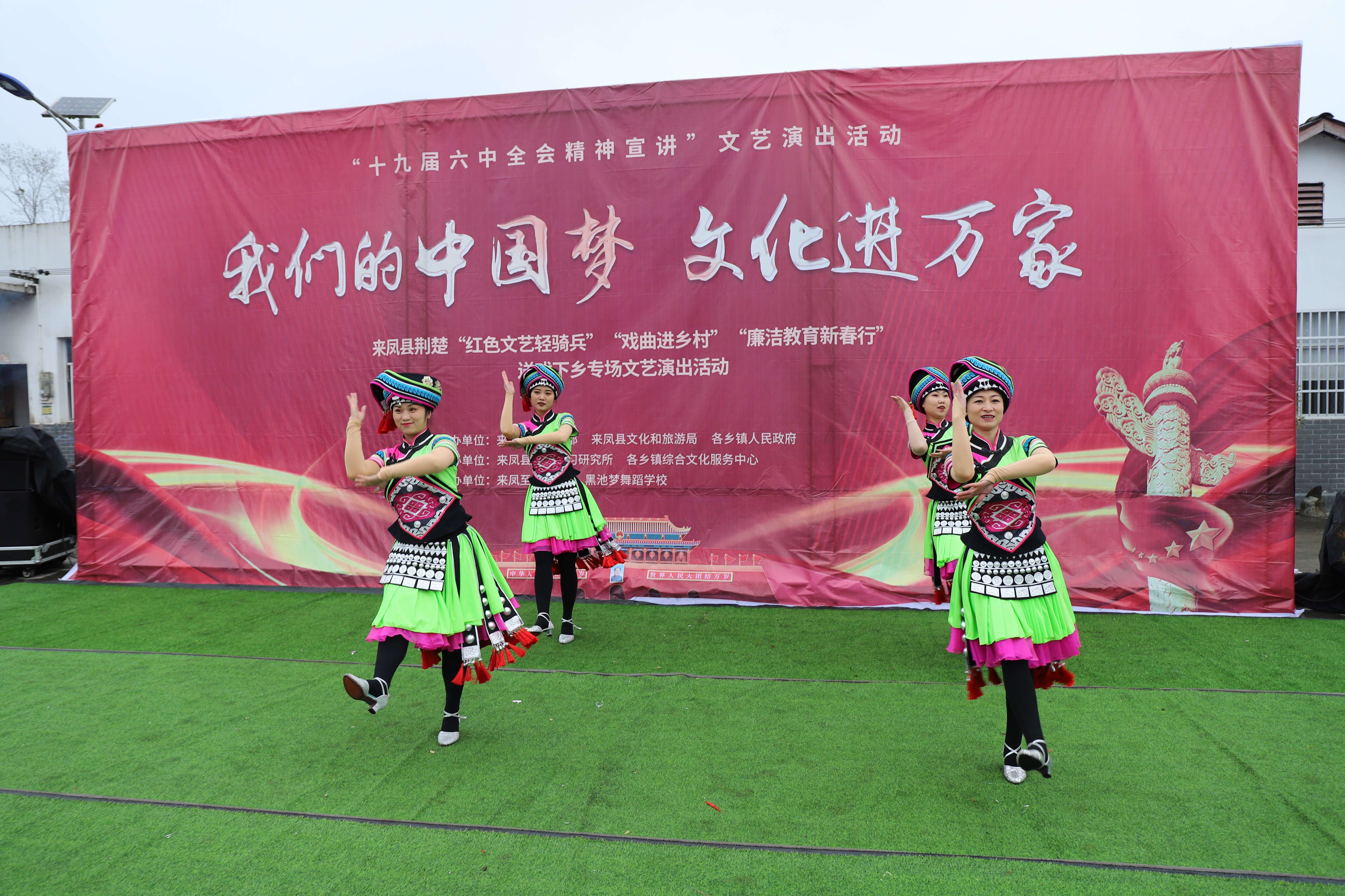 “精准扶贫,改天换地,喜看土家一片好河山……”12月12日,湖北省来凤县委宣传部组织“荆楚红色文艺轻骑兵”来凤小分队及该县张富清志愿服务先锋队文艺志愿服务分队,前往三胡乡三堡村和胡家沟社区集中安置点,开展“我们的中国梦 文化进万家”暨十九届六中全会精神宣讲文艺演出活动。