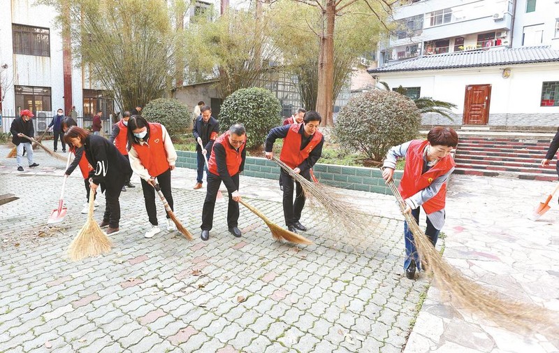 3月5日,黄冈市委宣传部、黄州区委宣传部等单位的党员干部深入市区体育路社区,参加黄冈市志愿服务联合会联合社区开展“学雷锋精神 展志愿风采”志愿服务活动。记者 胡辉 通讯员 张飞 摄