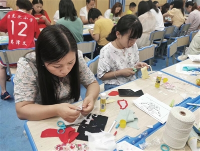 那么,学习阳新布贴时有没有烦恼?该校六年级学生郑米娅表示,刚开始练习用针线时,自己的手指经常会被针戳到,还流过血。最痛苦的是,受了伤还不能把图案做得称心如意。郑米娅说,为了能够缝制出理想的图案,自己还是咬牙坚持下来了。“遇到困难时,同学们都会相互鼓励,一起来看看哪个环节可以处理得更好。”郑米娅说,每当学会一个制作技巧,疼痛的烦恼便随之烟消云散。